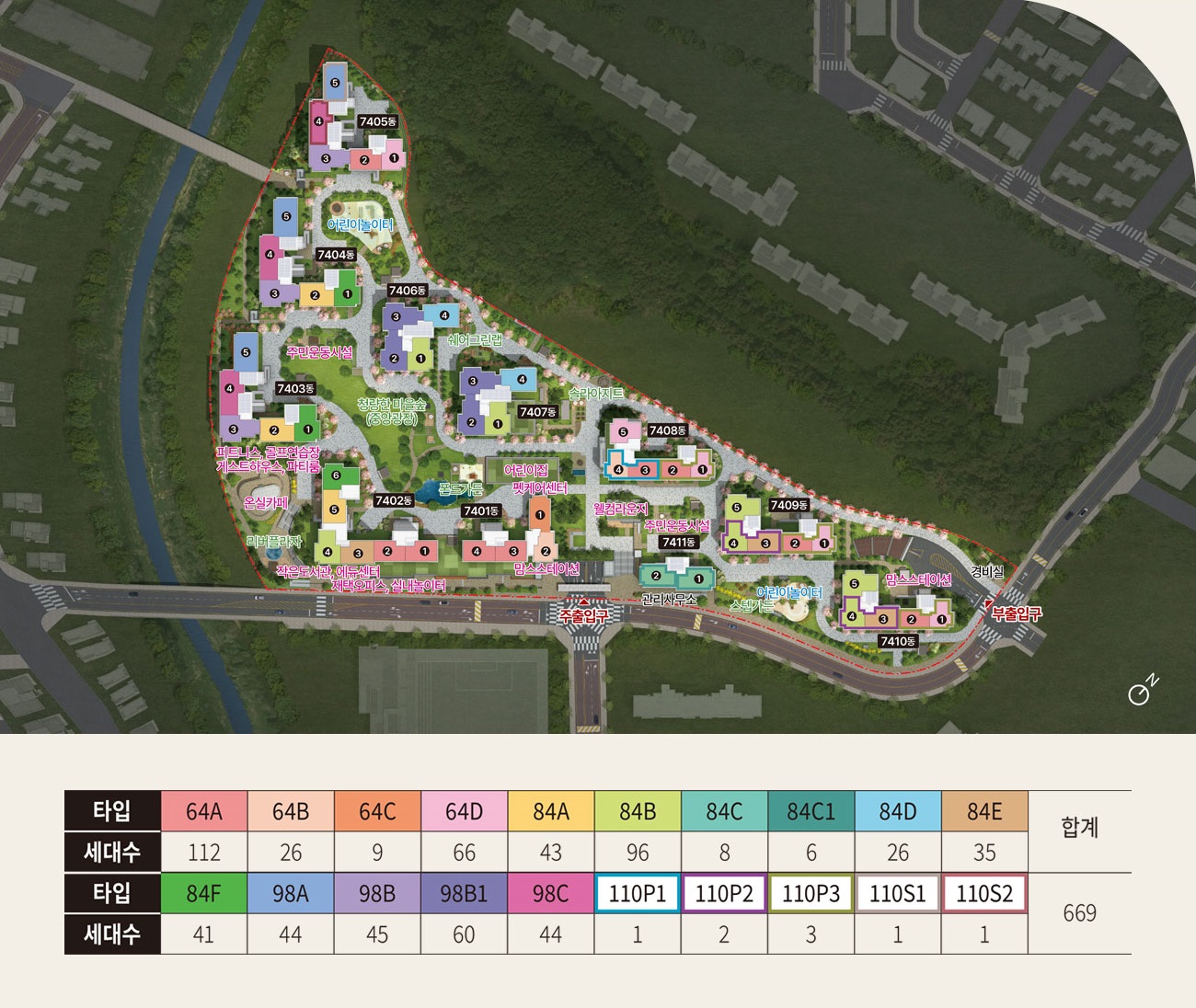 - 전용 68 · 84 · 98 · 110㎡ 총 669세대